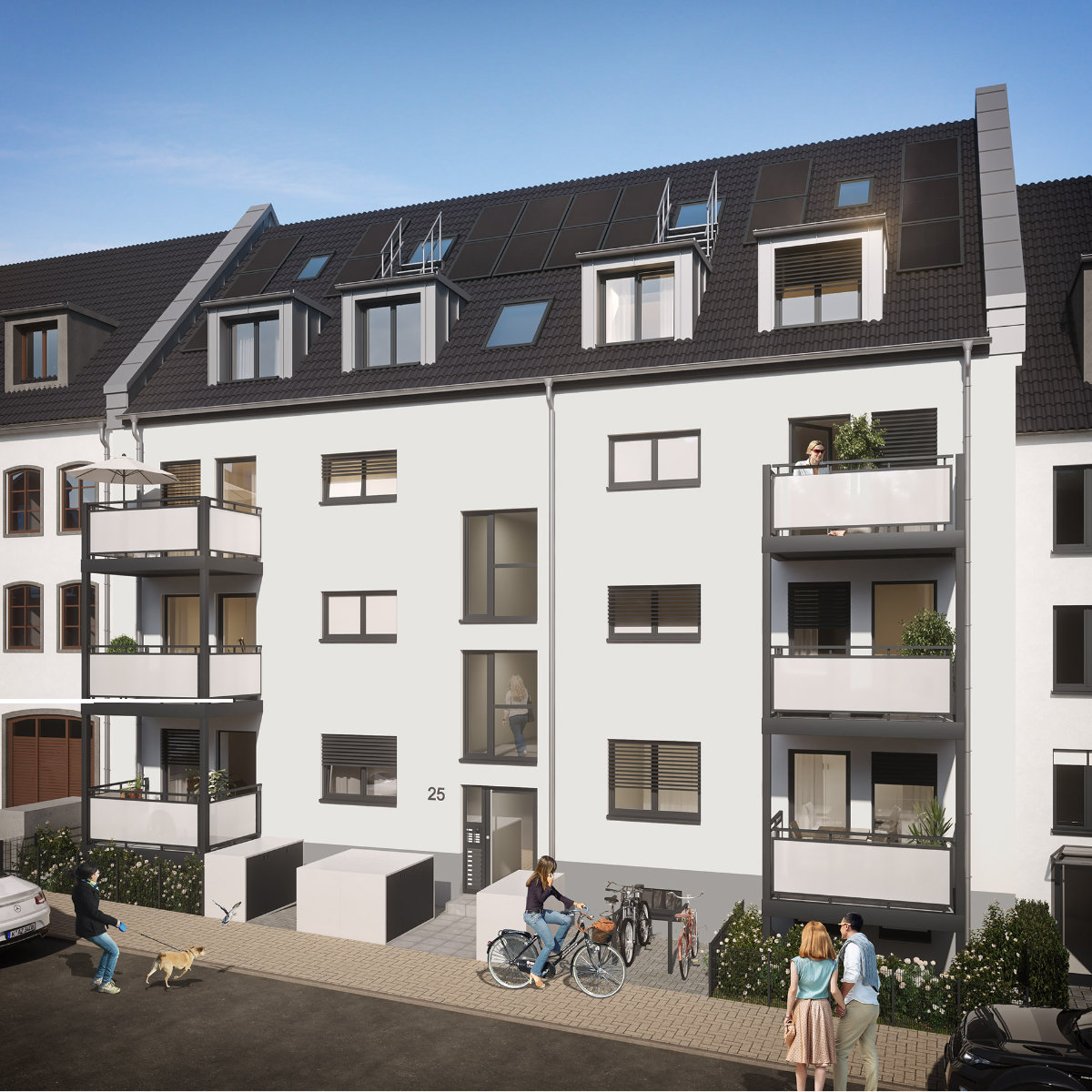 Das Mitte der 1950er Jahre in massiver Bauweise errichtete dreigeschossige Wohngebäude wurde im Rahmen unserer umfangreichen Sanierungs- und Modernisierungsmaßnahmen um ein Dachgeschoß nebst Spitzboden aufgestockt.